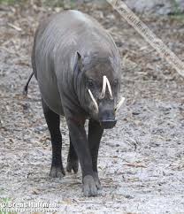 Atmo went inside his wooden hut and got his assault rifle (type of automatic gun: an automatic gun is a gun that loads automatically and if you hold down the trigger it keeps on shooting bullets: a machine gun is a kind of automatic gun.). He was going to try and put a male babirusa boar (kind of wild boar that has four tusks instead of two, which are extremely long and curvy) in a pen big enough to hold three pigs/boars that he had made out of wooden planks, but he had brought his gun just in case it charged at him. He threw a rope that he had over the babirusa's head, and then dragged it into the pen and tied it to one of the posts that the planks were attached to. Then he decided he would try and catch a female tomorrow.